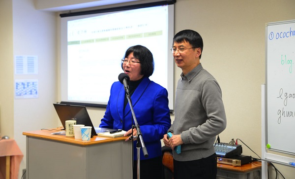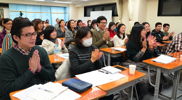 感謝主極大的憐憫與恩典! 「海外校園」創辦人蘇文峰牧師的接班人,第二任「海外校園機構」總幹事華欣牧師和高青林師母,在去台灣和中國內地服事的途中,不辭勞苦,特意來日培訓在日華人基督徒。 12月6日,在東京日暮裡國際教會,原本為報名的48人準備的48個座位,在10點開課前早早地被填滿了。雖然當天寒波突然逼近東京,但是一位接一位地湧入會場!服侍的同工,手忙腳亂地往教室裡添加桌椅。結果,上午有65位飢渴慕義的弟兄姐妹匯聚一堂,聚精會神地聆聽華欣牧師那震撼人心的得救見證,以及高青林師母的「門徒和小組服事」的培訓。內容濃厚,真理純正,談吐詼諧的培訓課程,使得窗外的寒流,被教室內的火熱驅散的無影無踪!