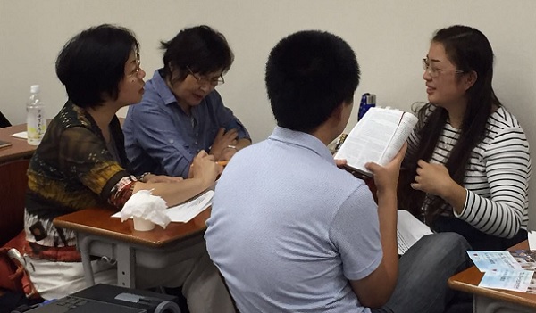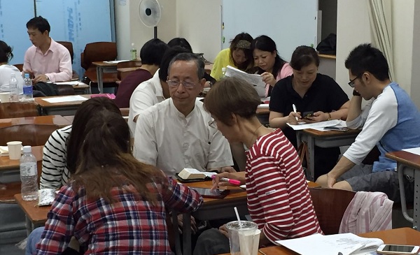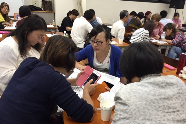 甘霖,滋潤著大地;神的話語,滋潤著我們的心!今天,在四連休之後、大學開學、公司加班之時,依然有來自12間教會34名弟兄姐妹參加培訓。參加者猶如被帶到溪水旁,躺臥在清早地上,大得靈裡的飽足。蘇文峰牧師抵達日本,小歇半宿,就登上了講台!他不停地喝著胖大海,卻滿面生輝地培訓我們! “神所差來的,就說神的話,因為神賜聖靈給他,是沒有限量的。”(約3:34)。 「帶領論述性小組查經」培訓中,不光聽講,還有當場實踐。學以致用,使得參加者再次飽嚐了聖經的豐富和甘甜!有的激動地說:聖經太寶貴了,我要更好地讀經;有的志氣高揚:我要盡塊開放家庭,建立小組查經;有的惋惜道:這麼好的培訓,不能來的實在可惜,,,,,