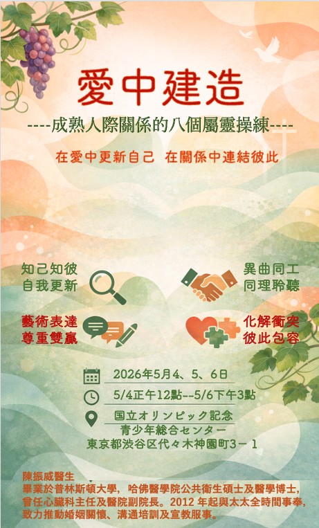 三寒四温の3月この頃、頼建国牧師と陳興蘭師母ご夫妻は台湾から来日して日本の兄弟姉妹たちに貴重なみ言葉と神の豊かな知恵をもたらしました。彼らがみ言葉に対する深い認識と豊かな証しには、参加者たちの心を動かしました。昼休憩時間 …